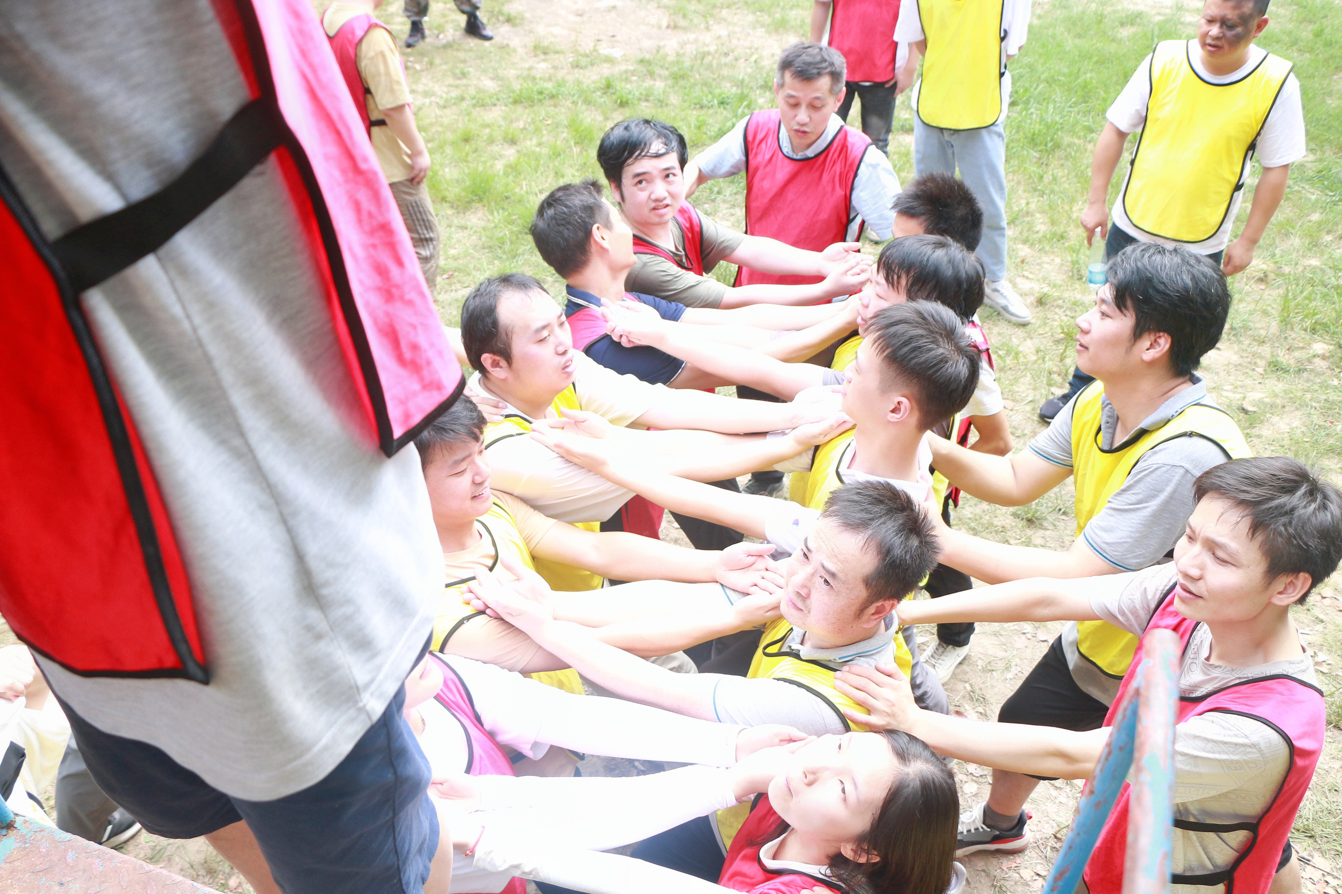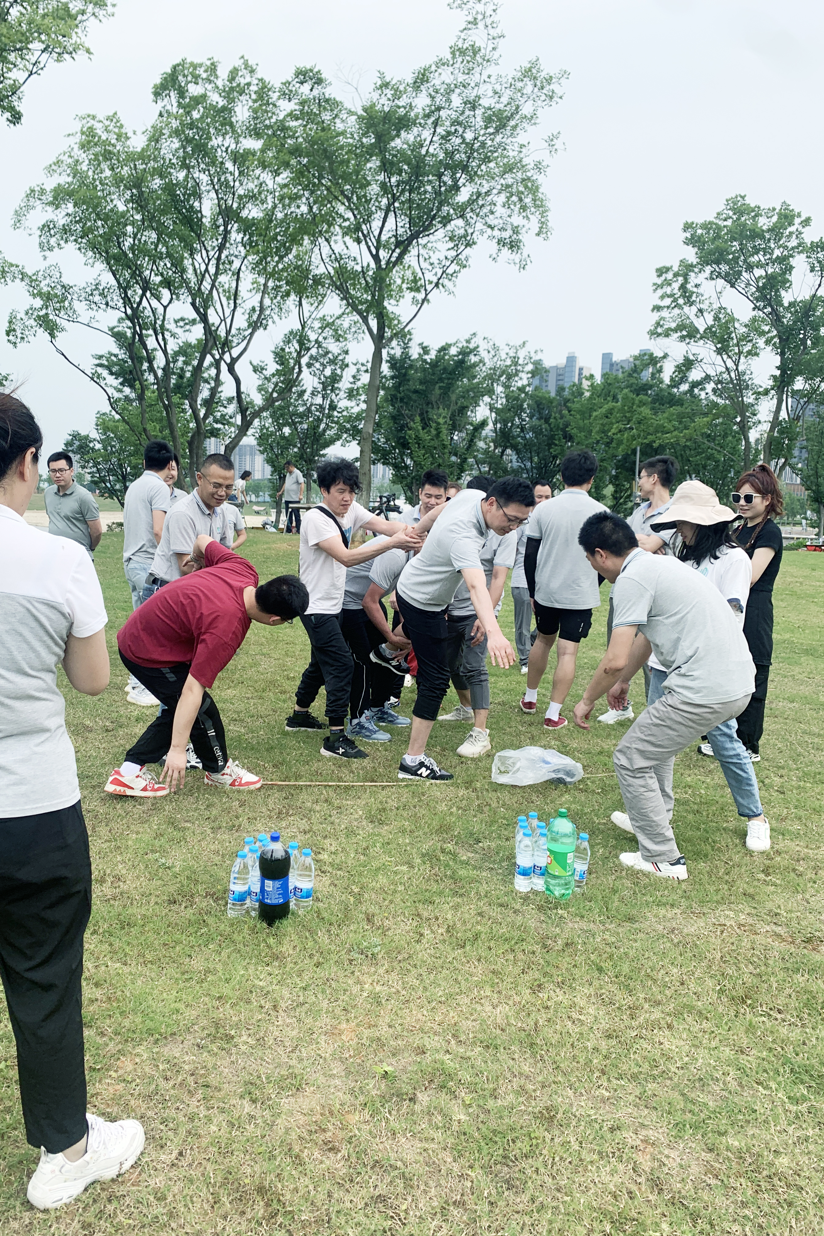 在团队合作的默契配合下,我们一起克服重重困难,相信同事,成功取到指定位置的水瓶。